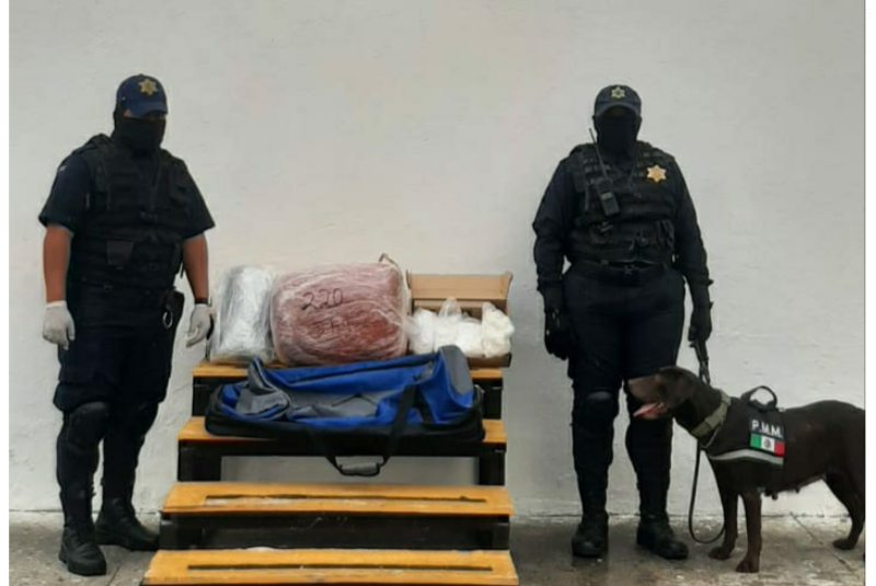 La intervención de los agentes pertenecientes a la Unidad Canina de la Policía Municipal de Mérida permitió la detección de más de 6 kilos de mariguana y 2 kilos de piedra conocida como “crack”.