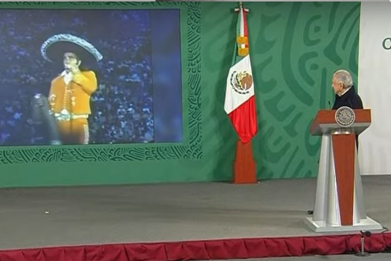 Anunció que la conferencia mañanera terminaría escuchando a Vicente Fernández.