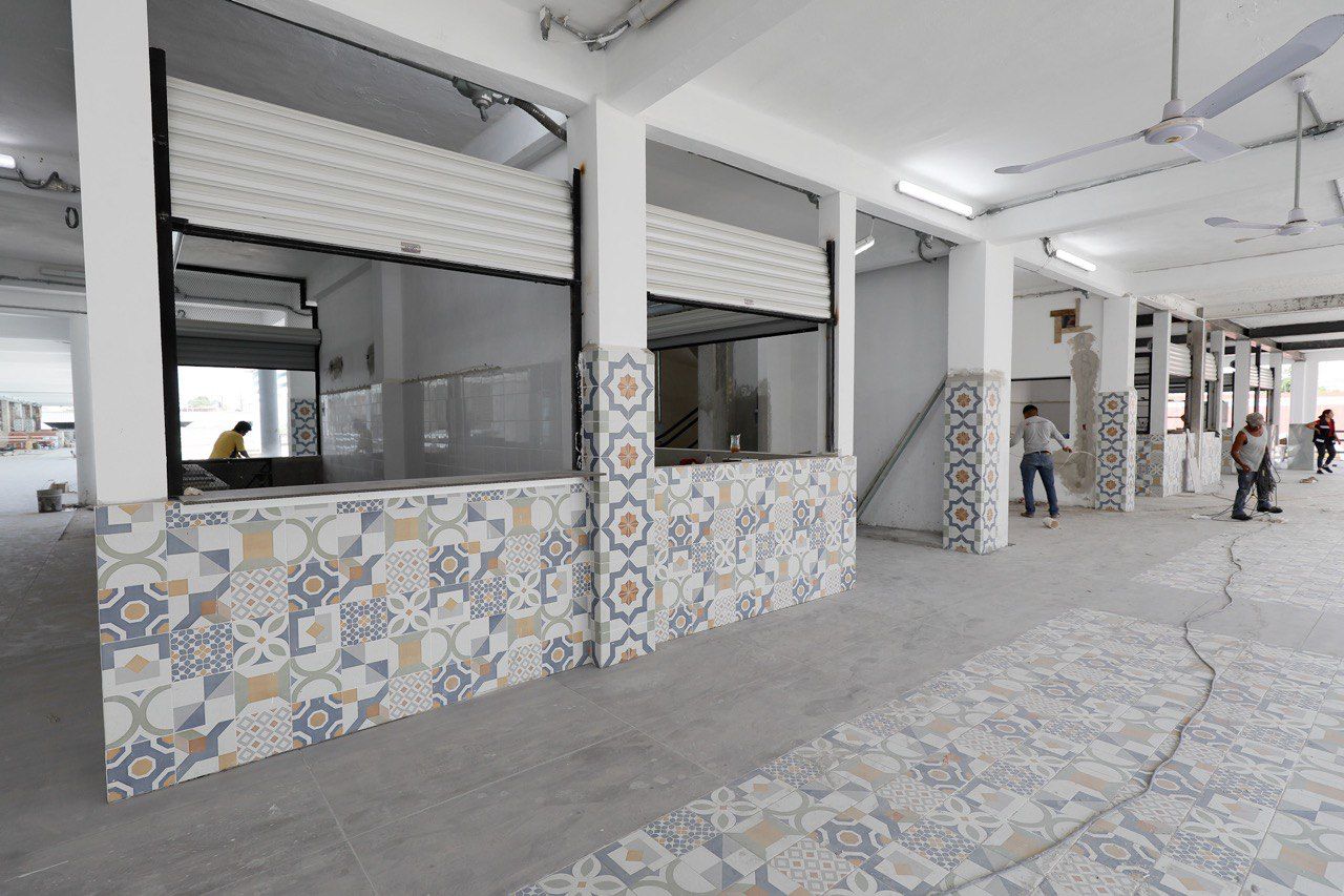 Agregó que hay avances en el área de las escaleras que dan acceso a la parte superior del mercado, donde se coloca una rampa eléctrica que conecta con el puente y permitirá que las y los visitantes y comensales puedan acceder al comedor, área de artesanos, joyeros, entre otras.