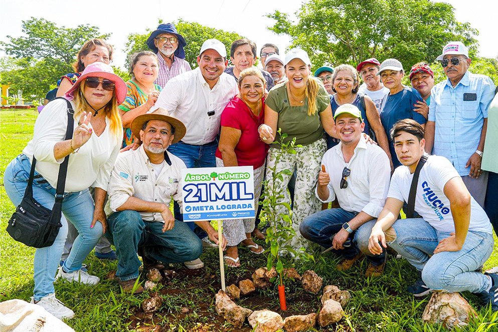 “Quiero decirles que hoy es un día muy especial porque hoy plantamos el árbol número 21 mil, con el que por fin llegamos a la meta de la estrategia Plantemos. En 2021, en mi campaña para diputado local, me comprometí a que cada voto de confianza recibido en las urnas se convertiría en un nuevo árbol y hoy con su confianza y compromiso logramos alcanzar la meta” afirmó Chucho Pérez Ballote.