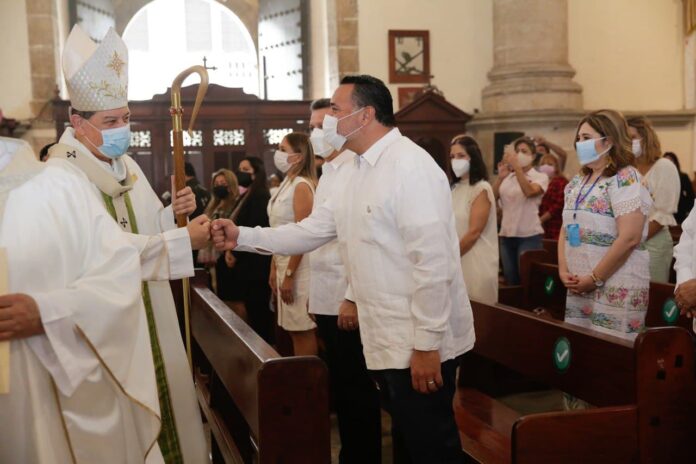 En una ceremonia religiosa oficiada por el Arzobispo de Yucatán, Mons, Gustavo Rodríguez Vega, autoridades estatales y municipales, encabezadas pro el alcalde de Mérida, Renán Barrera Concha, participaron en la tradicional celebración eucarística.