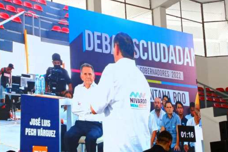 Cuestionaron al aspirante del partido MAS, Nivardo Mena, sobre los el problema de los socavones en la carretera Cancún-Tulum, dijo, “hoy más que nunca tenemos que darnos cuenta de que es el efecto de nuestra prosperidad. Respeto a los ambientalistas, pero tenemos que diversificar el turismo en Holbox y la reserva de la Biósfera de Sian Ka’an, no soy depradador, solo quiero que tengan mayor cantidad de recursos”. Sin embargo, la panelista le reclamó que no le haya contestado por el problema del socavón, porque sí se necesita un recurso para terminar con el problema.