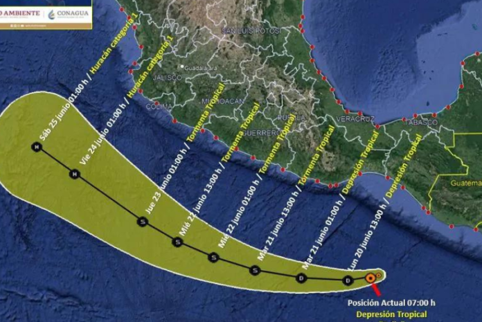 De acuerdo con el pronóstico meteorológico ‘Celia‘ se fortalecerá a tormenta tropical la tarde del martes y se convertirá en huracán de categoría I el 24 de junio, cuando se ubique 510 km al suroeste de Playa Perula, Jalisco.