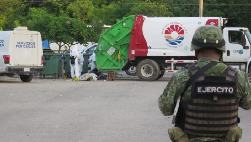 El número de emergencias 9-1-1 reportó que el personal de la empresa Red Ambiental que realizaba el retiro de los desperdicios en la avenida Orquídeas del fraccionamiento Villas Otoch Paraíso, Región 259, manzana 104, lote 10, encontró los restos humanos en un contenedor que estaban maniobrando.