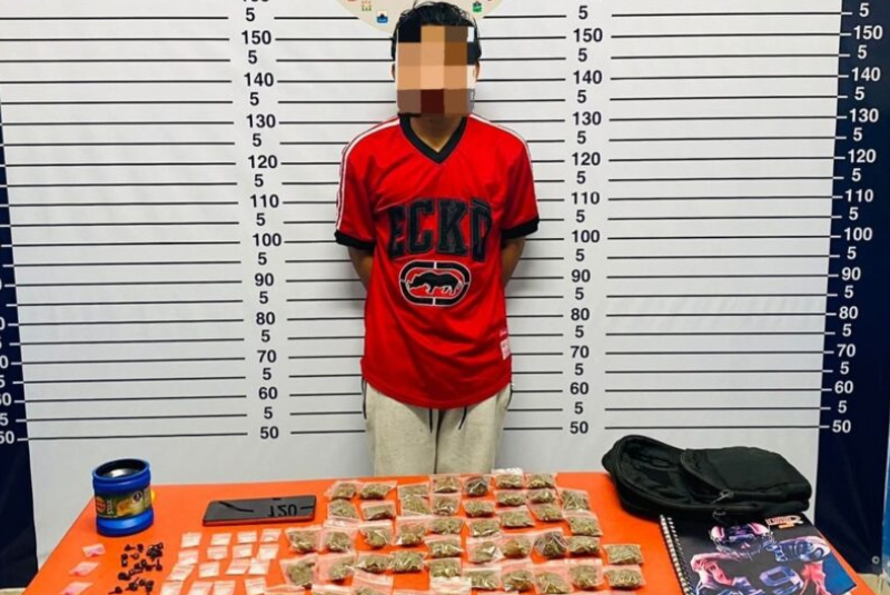 Un menor de edad fue asegurado con 98 bolsas con narcóticos por policías de la Secretaría de Seguridad Pública y Tránsito Municipal de Solidaridad, en el fraccionamiento Villas del Sol, en Playa del Carmen.