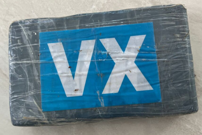 De forma oficial se informó que la droga estaba envuelta con cinta café y estaba marcada con las iniciales “VX”.