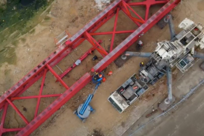 Aquí también arribaron de Guadalajara, Jalisco, las primeras dovelas para el viaducto que se construye en la ciudad de Tenosique. Cada dovela llega en dos partes, que son soldadas para conformar una sola pieza de 40 metros. Sobre estas estructuras, que serán montadas en los apoyos del viaducto, se ubicarán la losa y las vías del Tren Maya.