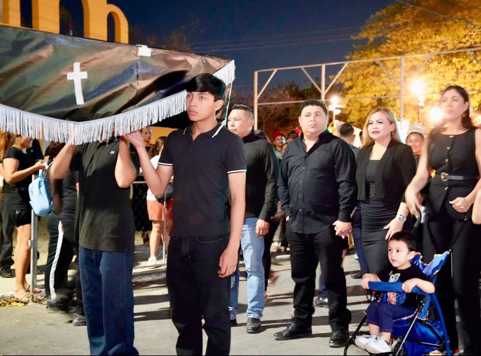 El alcalde Edwin Bojórquez Ramírez y la presidenta del DIF municipal Raquel Balam Rocha encabezaron la ceremonia final, que partió desde el cementerio hasta los bajos del Palacio Municipal, donde el ataúd con el “testamento” del personaje simbólico ardió ante una plaza abarrotada.