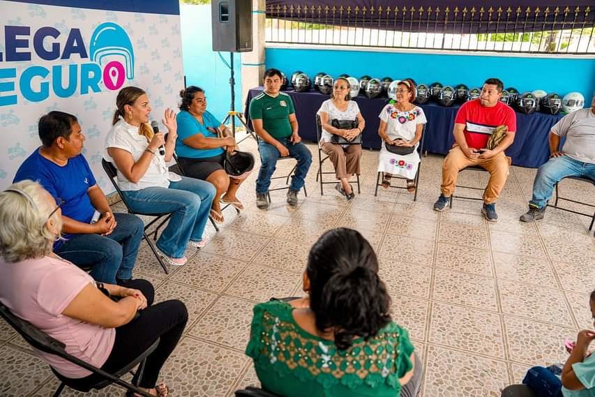 “Llega seguro” busca proteger a las y los meridanos que utilizan la motocicleta como herramienta de trabajo, informó la alcaldesa electa, Cecilia Patrón Laviada, durante la entrega de cascos con certificación DOT.