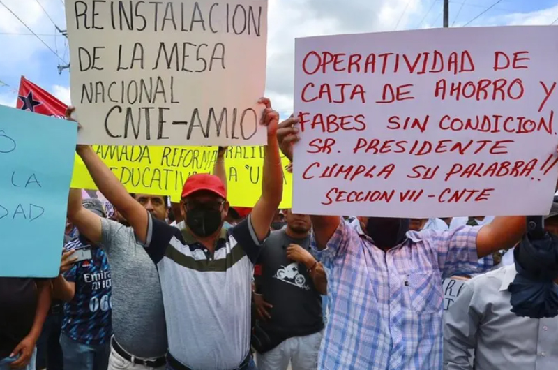 A su llegada, López Obrador fue interceptado por un representante del magisterio, quien le reclamó que en la última mesa de diálogo del 2020 se acordó que se iban a operativizar sus cajas de ahorro pero hasta la fecha eso no ha ocurrido.