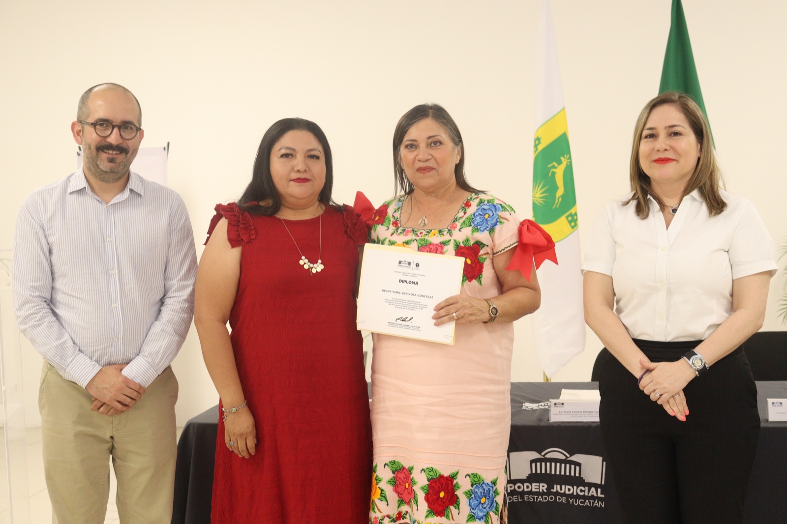 En la ceremonia, en la que también estuvieron presentes el Magistrado José Pablo Abreu Sacramento, los Consejeros de la Judicatura María Ely Farfán Flores y Níger Pool Cab así como la directora del Centro Estatal de Solución de Controversias Elma Gabriela Ávila Miranda, se informó que el programa del diplomado se dividió en cuatro ejes principales: Sensibilización y contextualización socio jurídica de la mediación; Formación sustantiva en resiliencia, crisis, estructura y dinámica del proceso de mediación; Compilación del marco legal de la mediación en diversas materias y la Meta-proceso y validación de competencias como mediadores.