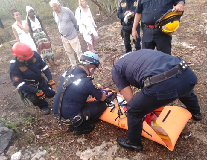 Al recibir la llamada de auxilio, los bomberos, paramédicos y policías estatales llegaron al lugar por un camino de terracería, realizaron el rescate y trasladaron a la lesionada en una ambulancia de la SSP a un hospital en Mérida.